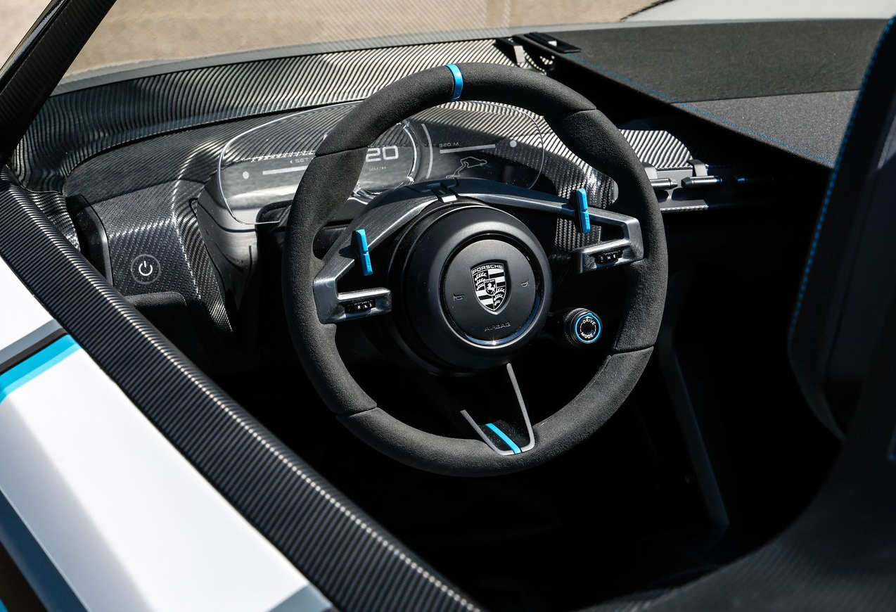 계기판은 스티어링 휠 위 투명한 표면에 위치한다. 레이싱 스티어링 휠은 차량의 경량화를 직관적으로 보여주고 충격 흡수 장치가 마치 매달려 있는 것처럼 보인다. 개인화 컨트롤에는 차량 외관의 마이애미 블루 컬러를 다시 한번 강조한다.