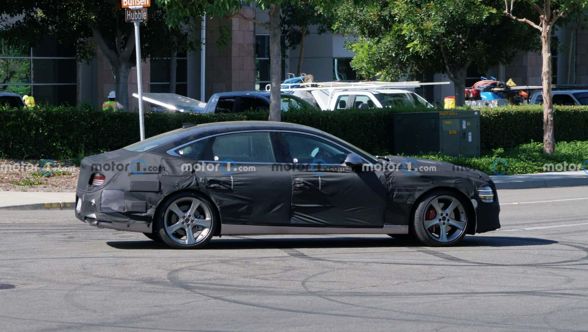 여전히 두터운 위장막으로 가려진 채 모습을 드러냈는데, 밝은 햇살과 선명한 이미지 조합 덕분에 고급 세단의 일부 변경 사항을 디테일하게 살펴볼 수 있다고 해외 자동차 전문매체 모터원은 소식을 전했다.