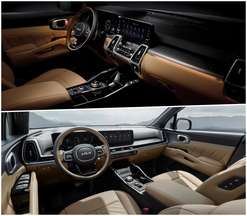 특히 `경계가 없는 이어짐`을 주제로 수평적인 조형을 통해 와이드한 이미지를 강조했는데, 12.3인치 크기의 클러스터와 인포테인먼트 시스템을 하나의 화면처럼 매끄럽게 연결한 파노라믹 커브드 디스플레이는 기아의 차세대 인포테인먼트 시스템 `ccNC`가 적용돼 다양한 정보를 통일감 있게 보여준다.
