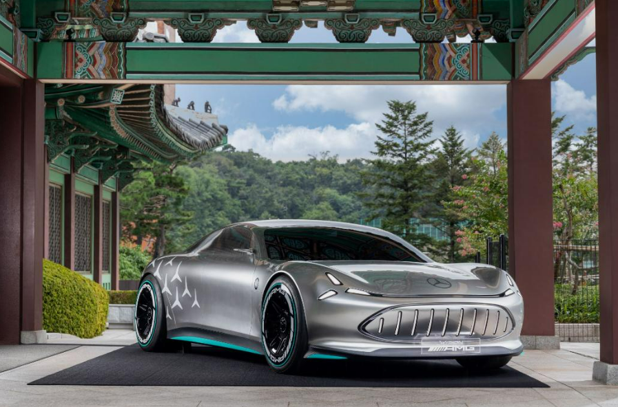 한편, 메르세데스-AMG 순수 전기차의 미래를 보여주는 전기 쇼카 △비전 AMG는 메르세데스-AMG가 플랫폼부터 디자인, 드라이브 트레인 기술까지 전 과정을 개발한 첫 순수 전기 모델이다. AMG.EA 플랫폼을 기반으로 한 4-도어 쿠페 비전 AMG에는 긴 휠 베이스와 짧은 오버행, 강력한 숄더, 큰 휠, 독특한 리어 스포일러, 별 모양의 헤드램프 등 극적인 차체 비율과 AMG 및 F1 특유의 감성이 더해진 특별한 디자인 구현됐다.