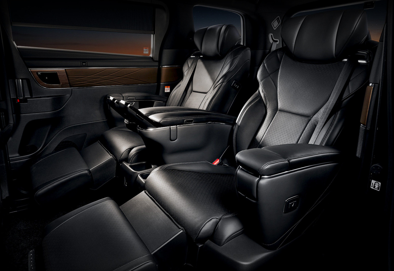 2열 공간은 다양한 편의기능들을 손쉽게 조작하면서 동시에 뛰어난 착좌감을 자랑하는 이그제큐티브 라운지 시트가 탑재됐다. 이그제큐티브 라운지 시트에는 토요타 최초로 등받이와 암레스트 부분에 저반발 메모리 폼 소재를 도입하여 몸으로 전달되는 진동을 최소화하도록 만들어졌다. 또한 하단 쿠션 부분의 우레탄 소재는 체중의 압력을 분산시켜 장시간 이동 시 허리와 하체 피로도를 줄여준다.