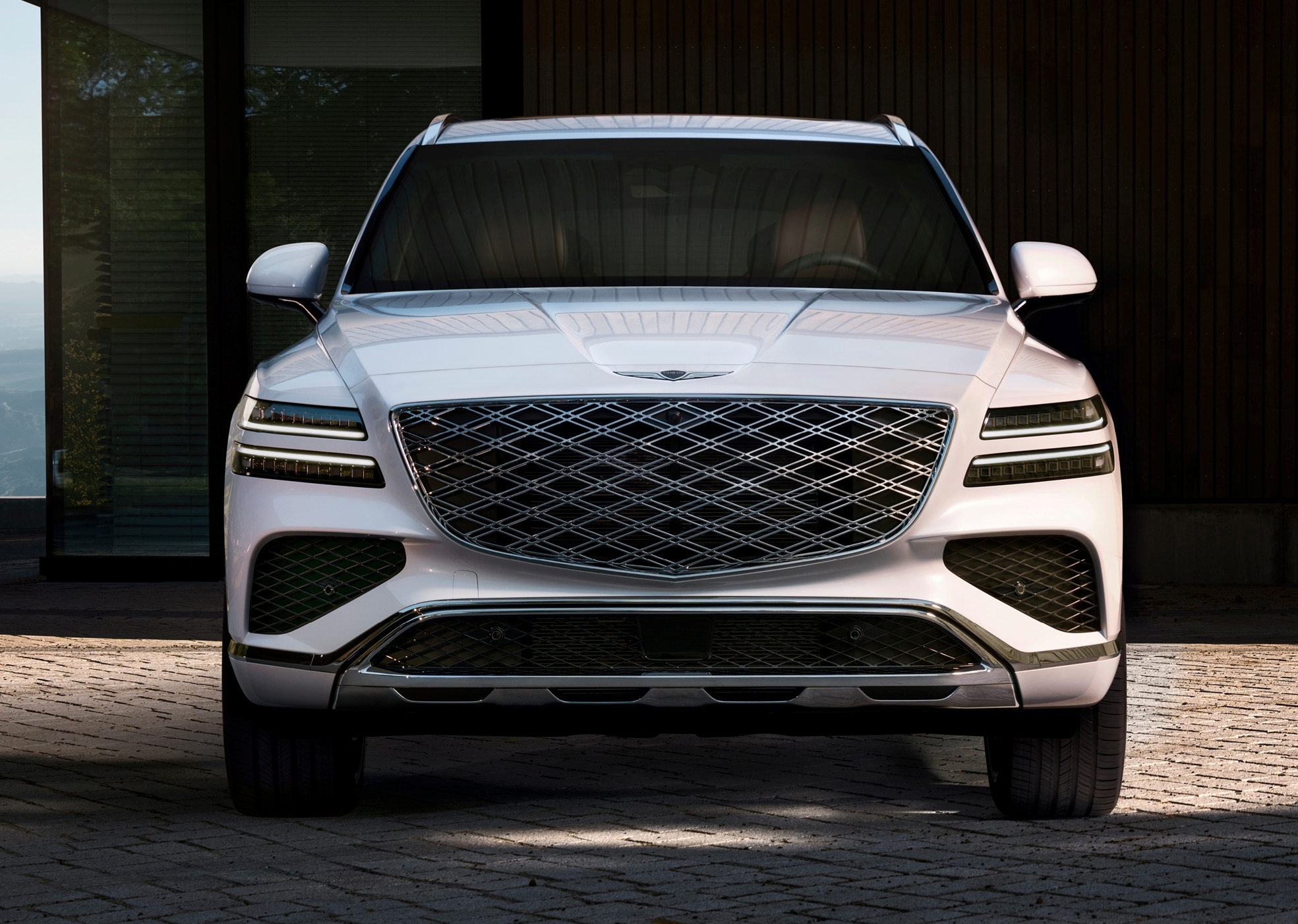 신형 GV80의 외관은 완성도 높은 기존 GV80 디자인의 품격과 스타일은 계승하면서 럭셔리한 디테일을 더해 고급감을 높인 것이 특징이다. 전면부 크레스트 그릴에는 이중 메쉬 구조의 라디에이터 그릴을 적용하고 기존보다 코너라인을 부드럽게 다듬어 정교한 이미지를 구현했다.