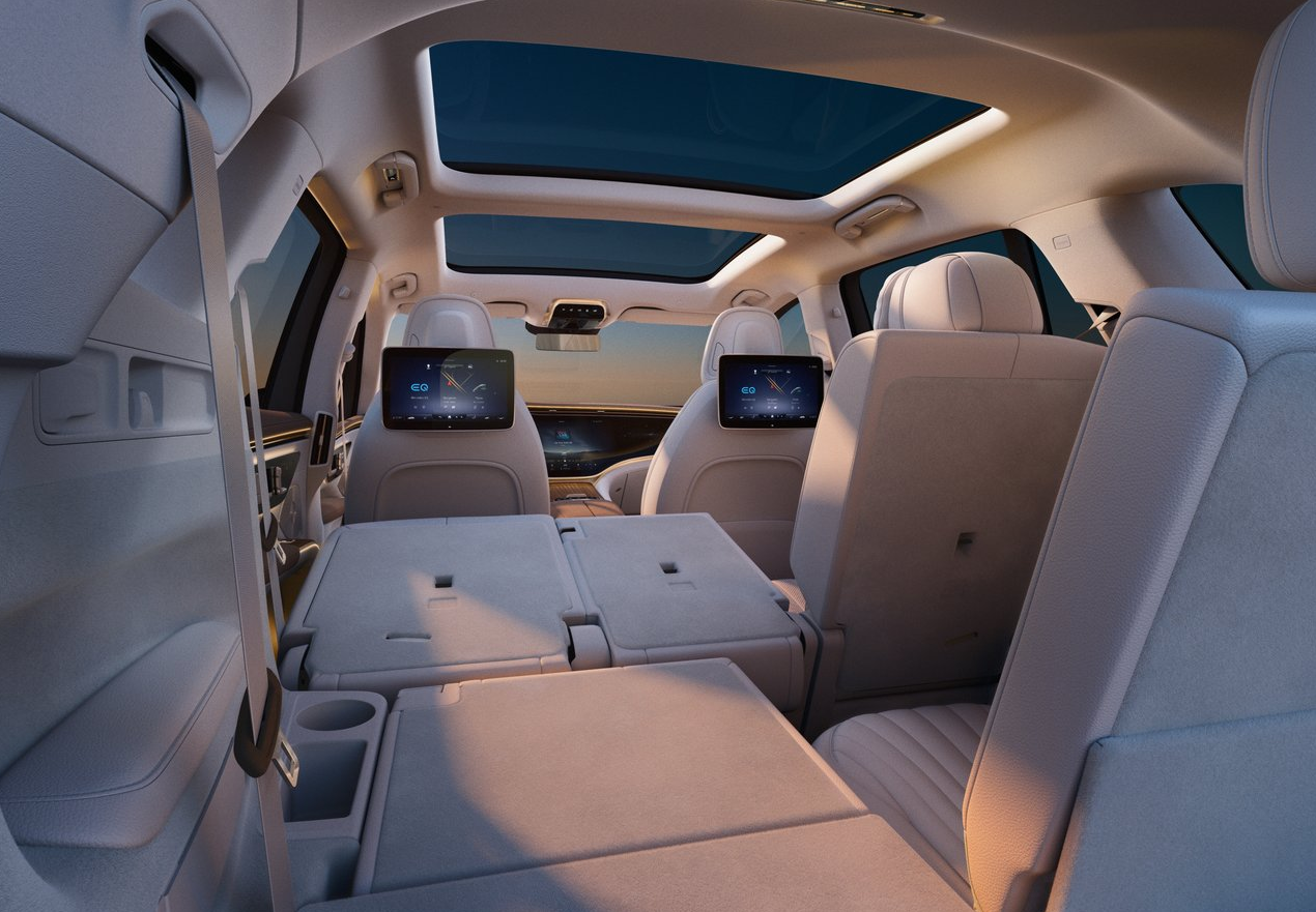 여기에, 실내 공간은 MBUX 하이퍼스크린을 중심으로 타의 추종을 불허하는 듯한 독보적인 럭셔리함과 미래 지향적인 분위기를 연출한 모습이다. 하이퍼스크린은 디지털 계기판과 중앙 디스플레이, 조수석 디스플레이로 구성됐다. 2열 5인승 기본이며, 3열 7인승은 옵션으로 선택 가능하다.