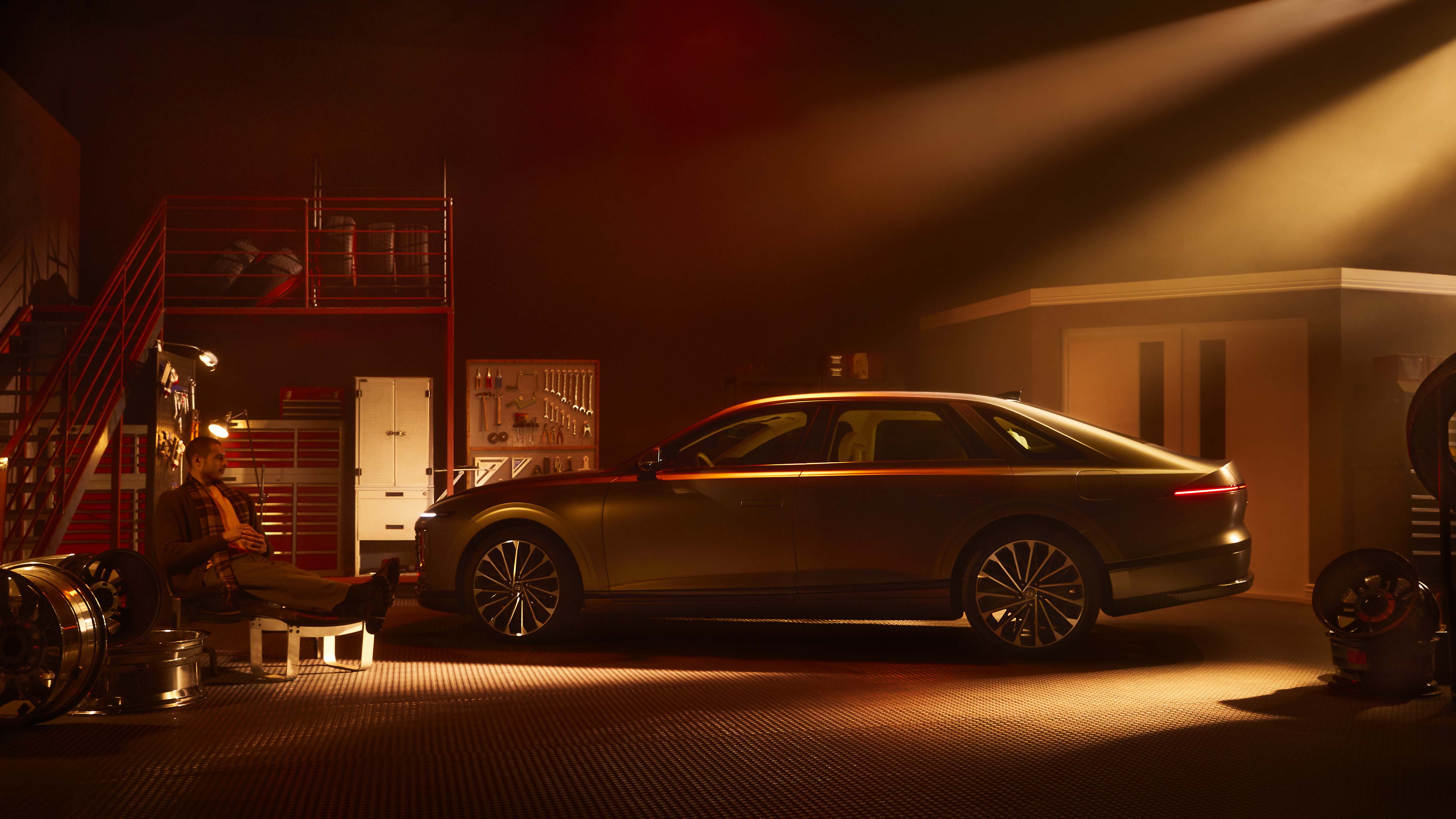 특히 측면부는 동급 최장 휠베이스와 롱 후드의 완벽한 비례감과 함께, 실내에 들어서면, 넓은 공간감의 고품격 감성 공간에 한국적 이미지를 반영한 컬러 및 친환경 소재를 경험할 수 있다. 원 스포크 스타일 스티어링 휠은 1세대 그랜저의 향수를 담아내며, 인체공학 기반의 슬림화 디자인과 버튼 최적화 등으로 사용 편의성을 높일 것으로 기대된다.